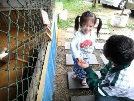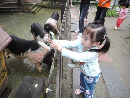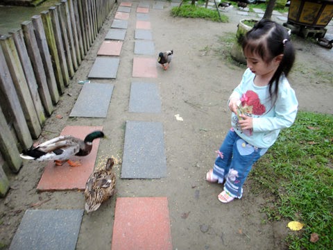 這裡很棒~免門票,到停車場停好車子,就看到小動物迎接我們!外公拿飼料給我餵母雞.....好開心