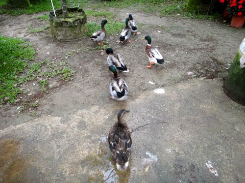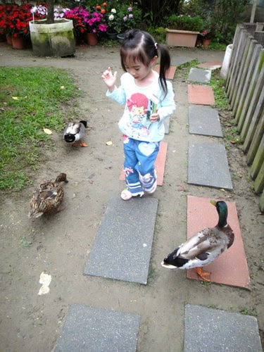 唉呀~好多鴨鴨追著我,人家會怕怕啦....不要搶!飼料通通丟給你們吃....