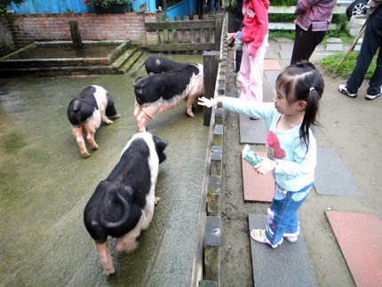 小豬喝ㄋㄟㄋㄟ的情景,是很多小朋友前所未見的!豬媽媽帶的豬小弟擠在門口,跟遊客們對望~好可愛喔!