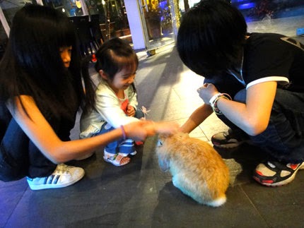 接近傍晚....人潮較少的時候,主人會把兔子帶到餐廳野放,讓小朋友們有新的體驗!