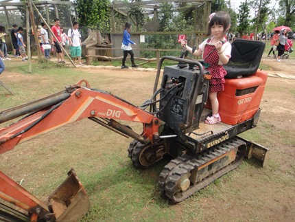 這裡還有小男生為之瘋狂的"迷你挖土機"小妞操作起來,也挺有架勢的!