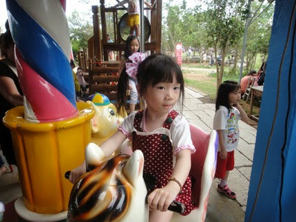 這裡是用餐的地方,旁邊有小型遊樂滑梯,還有投幣式的旋轉木馬,吃東西的地方式開放區,所以...沒有冷氣吹喔!