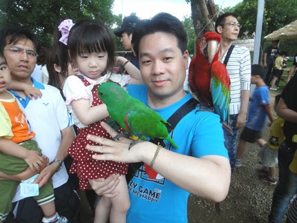 彩色鸚鵡拍起來~羽毛真的好亮麗!寵物保母說...要拿掉眼鏡,避免鸚鵡去啄~