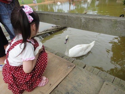 來看看黑天鵝與白天鵝嚕,本來在故事書裡才看的到,現在親自體驗....讓她覺得好奇妙呢~