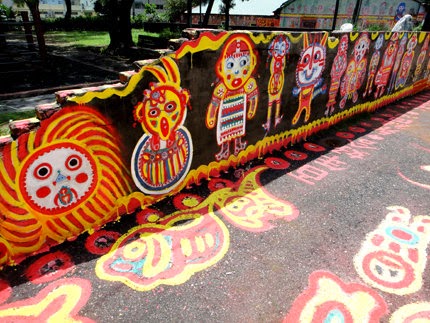 從停車場一下來....很快就找到閃亮亮的入口處,地板~圍籬...全都來是於老爺爺的手繪!