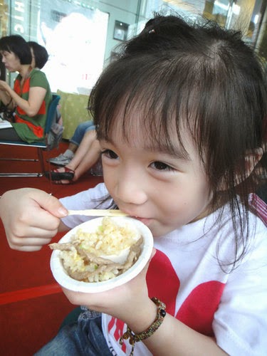 哇~好多炒飯喔,小妞開心的一口接一口!