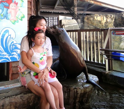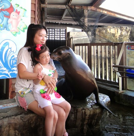 跟海獅玩親親~張小妞怕的要命,還會記得跟鏡頭比YA~笑死我了!
