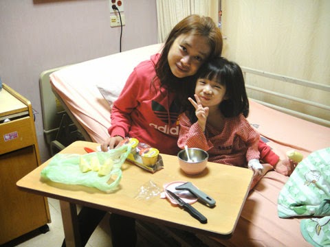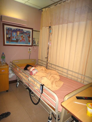 一路上...她牽著我的手不放,到了病房...換了床,自己擠到床的邊邊,讓了一個大位置,叫我躺在她身邊~不知道的人,還以為我才是"病人"呢!