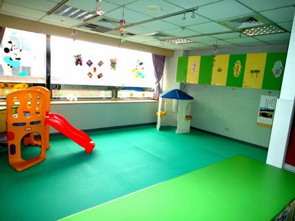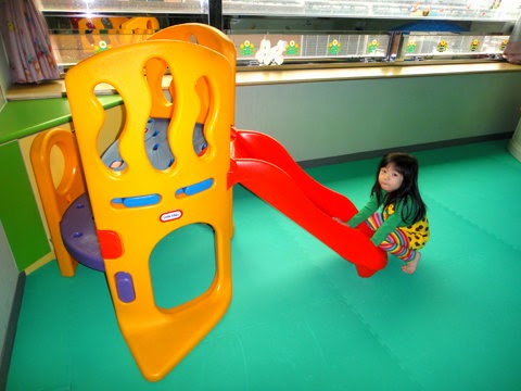 因為~正逢午休時間,孩童都在午睡~所以....只有小妞一個人獨佔遊戲室!沒多久~我們就辦好出院,開心回家去了!