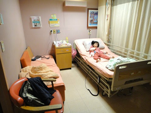 可以的話大約傍晚的時候,就讓她轉出普通病房,你們要自費的新大樓雙人兒童病房,已經有排到床位!