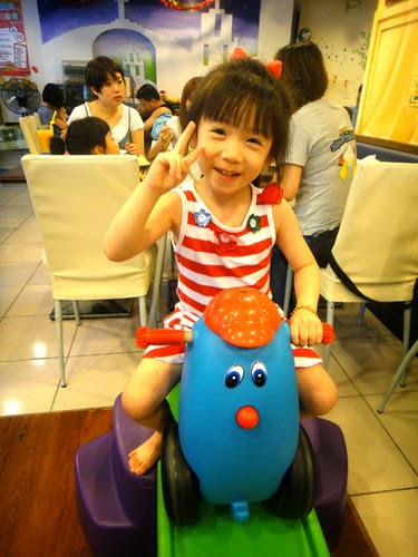 來這裡用餐~小孩好難專心喔,叫都叫不來...顧著玩!還是小樂樂最乖...被媽麻關在兒童椅上,也只能乖乖吃飯!