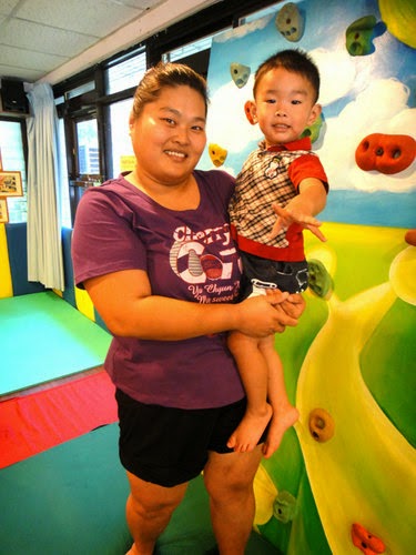 欣如同學:上次見面的時候,小Q弟還抱在懷裡,現在都會攀岩了呢!