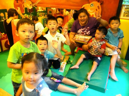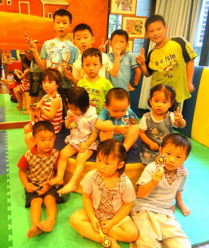 果然....吸引小朋友一擁而上,有的吃...又有的抽!終於讓他們安靜好一會~