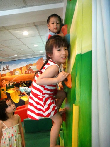 女孩也玩攀岩....還有一個別桌的小姐姐,來助她一臂之力!