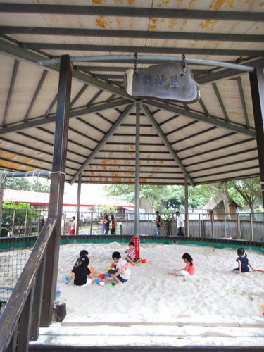 這裡真的是孩子的天堂,有沙坑區、還有大型的溜滑梯呢~